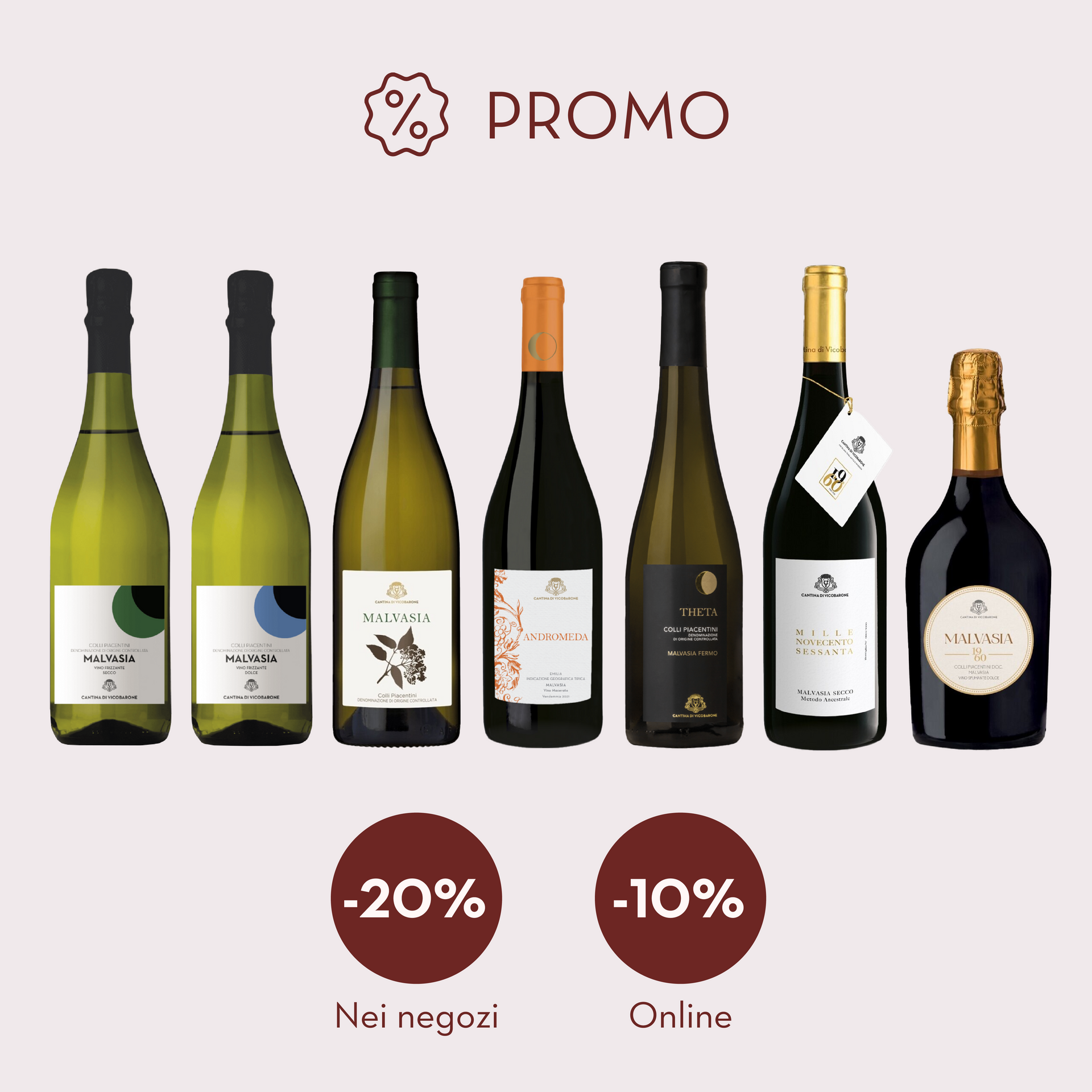 Per te uno sconto -20% su tutti i vini, di tutte le linee, della varietà “MALVASIA” (DOC-IGT).