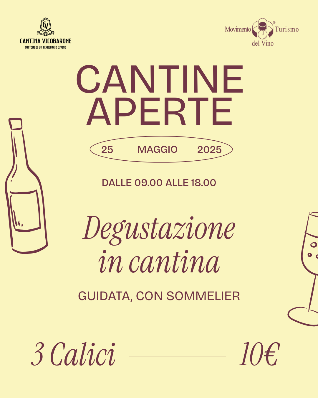 Il 25 maggio 2025 la Cantina Vicobarone apre le sue porte per una giornata speciale dedicata a tutti gli amanti del buon vino e dei sapori autentici del territorio.