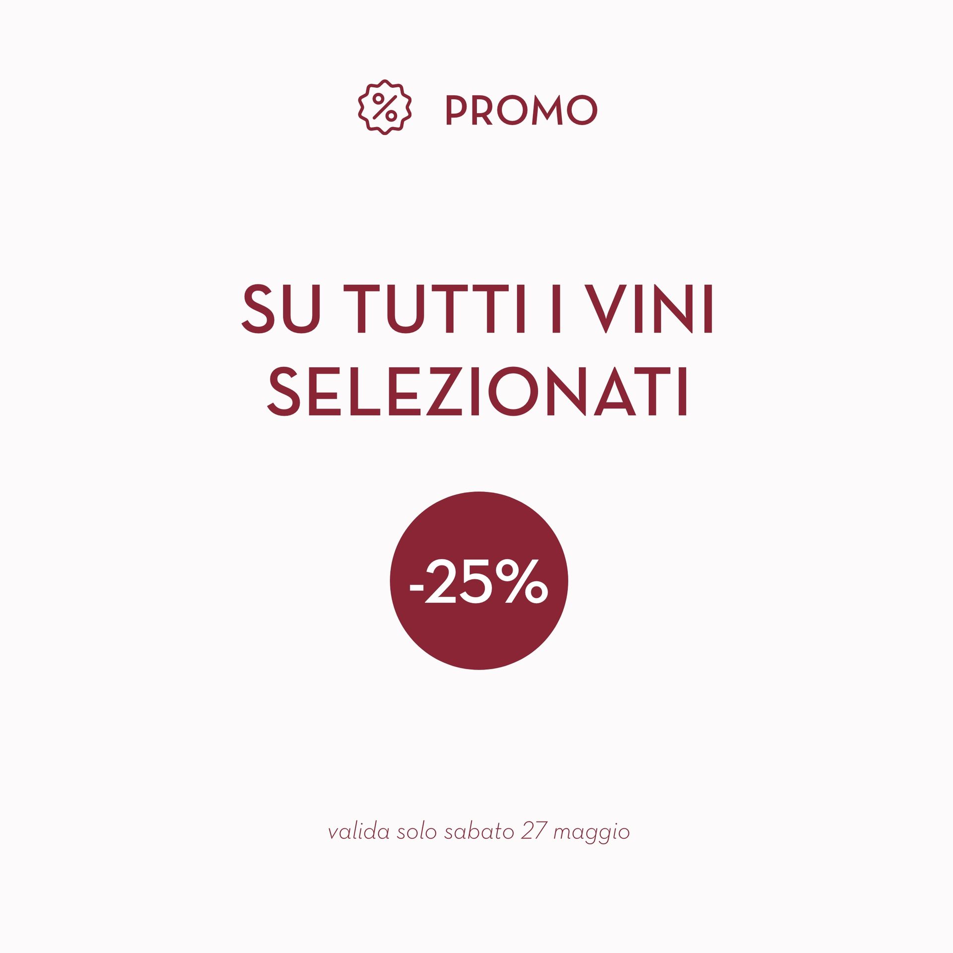 Per tutta la giornata, avrete l'opportunità di approfittare di uno sconto eccezionale del 25% su una vasta selezione dei nostri migliori vini.