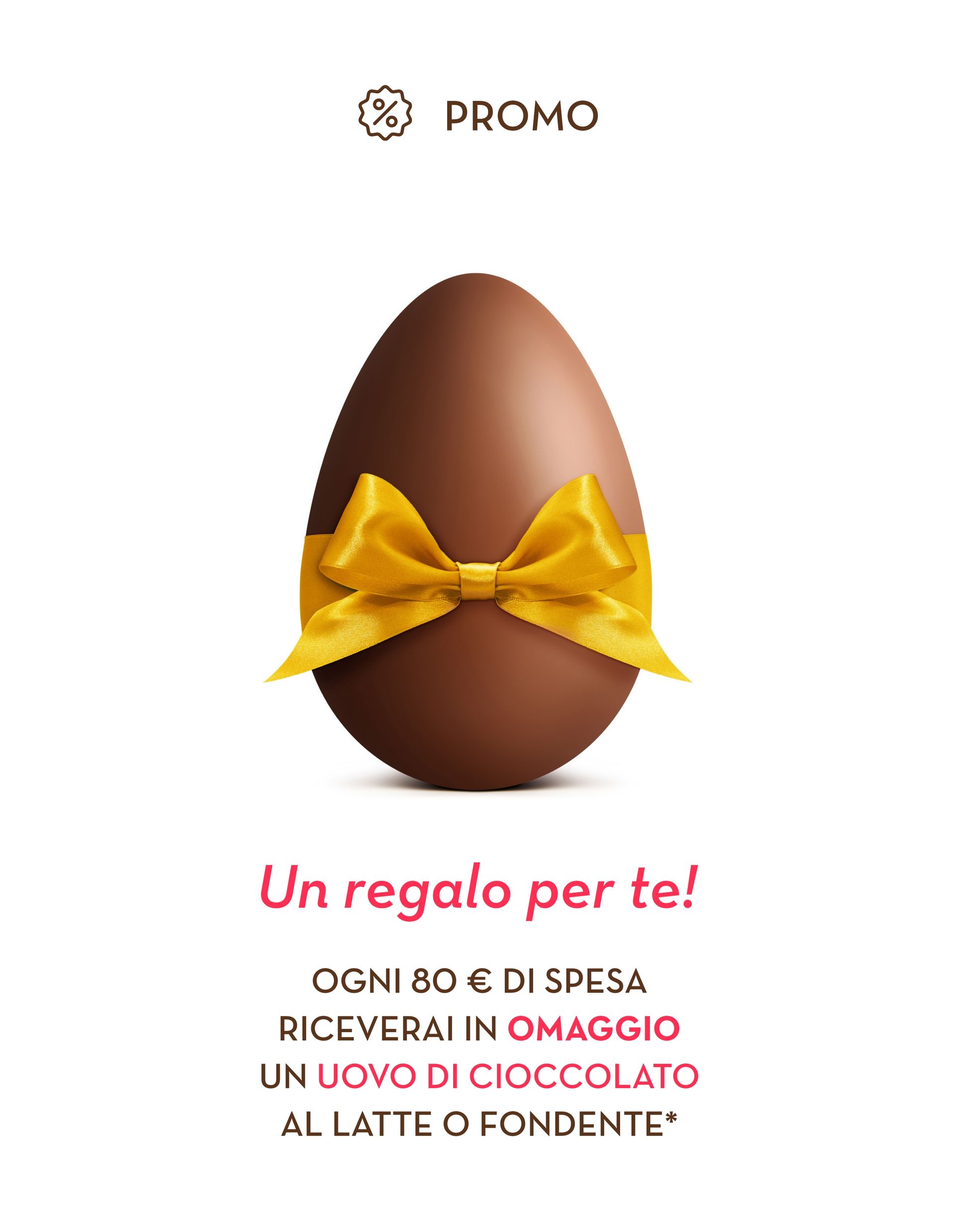 Ogni 80 € di spesa, riceverai in omaggio un Uovo di Cioccolato al latte o fondente.*