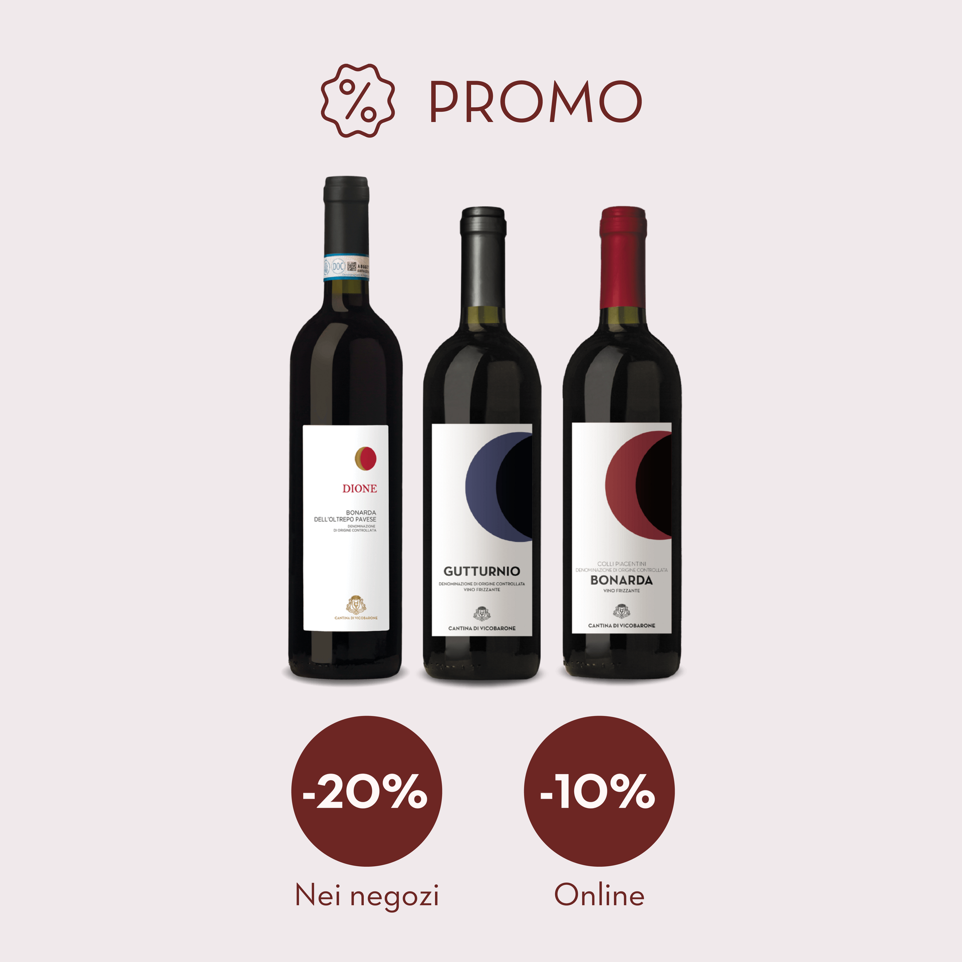 Sconto del -20% (compreso di Fidelity Card) - sui vini GUTTURNIO FRIZZ. LINEA “I TRAD.” formati 0,75 E 1,5L + DIONE + BONARDA SECCO LINEA “I TRAD.” 0,75L.