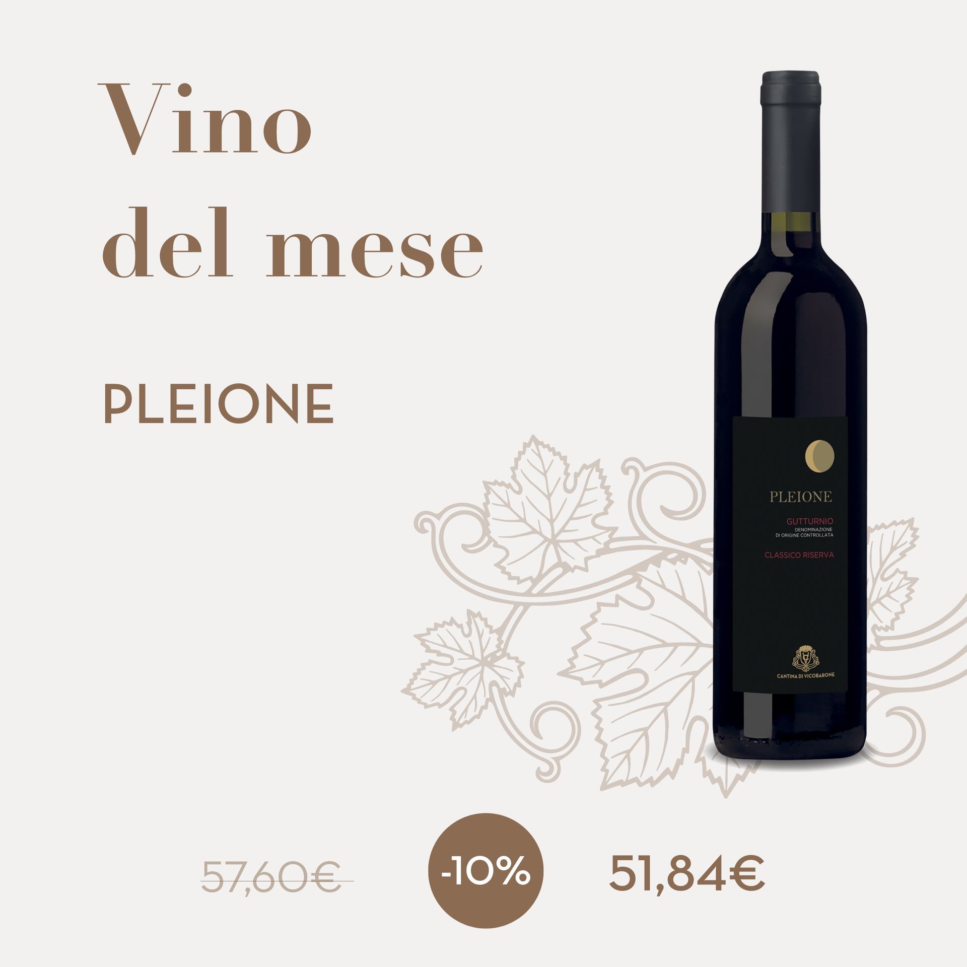 Ogni mese selezioniamo un vino in sconto - il Vino del Mese - che racconti l'eccellenza e l'autenticità della nostra produzione.
